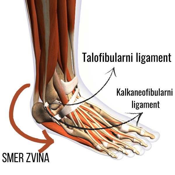 Do zvina najpogosteje pride ob inverziji stopala, smer nakazuje puščica.